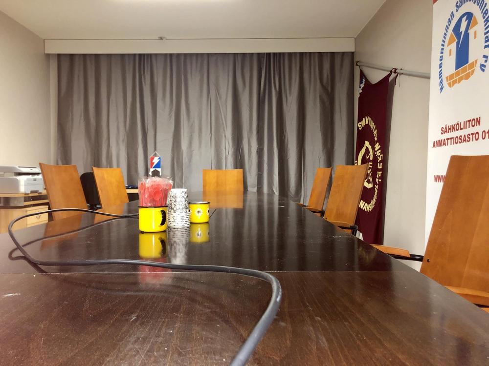 Toimistossa on hyvät toimistovarusteet mm. 75" TV, kopiokone ja printteri. Kahvit ja teet tarjotaan osaston puolesta. Myös jääkaapin sisältö on vapaassa käytössä. Muistathan tuoda ja viedä omat pullat ja maidot yms. lyhyen aikaa säilyvät tuotteet.